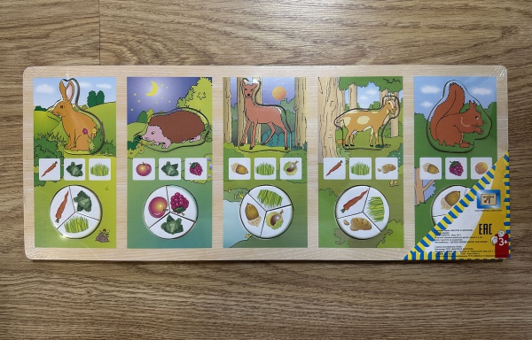 Пазл «Кто чем питается?» познакомит ребенка старше полутора лет с симпатичными зверями, средой их обитания и едой, которую каждый их них предпочитает. Более полезную игрушку сложно себе представить!
