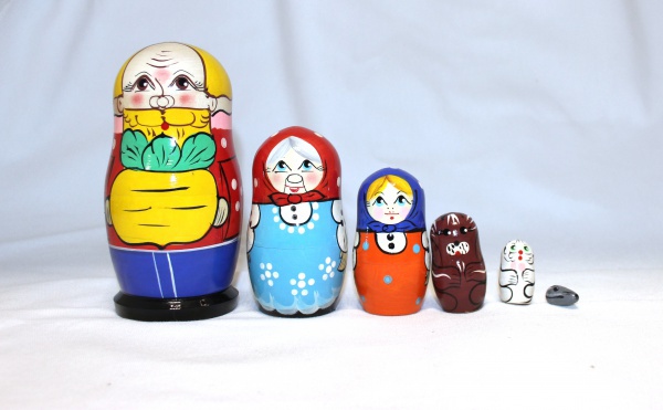С нашими матрешками по сказке Репка можно устроить дома веселое театральное представление. Для театрализации сказки есть в матрешке все герои: самая большая матрешка – дед, за ним поменьше – бабка, внучка, собачка Жучка, кошка Мурка и самая маленькая серенькая мышка. После представления можно всех сложить в одну большую матрешку. Матрешки изготовлены из чистой древесины и расписаны яркими красками. Матрешки из сказки Репка развивают умение сравнивать, выделять целое и части объекта, развивать логическое и творческое мышление и иллюстрируют собой любимую сказку!