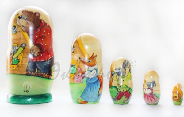 Прекрасный сувенир и отличный подарок для гостей из зарубежья, а также милая забава для мальчика или девочки. Матрешка иллюстрирует всеми известную и любимую сказку "Теремок". Ребенок обязательно оценит такую матрешку и с радостью приступит к игре с ней.