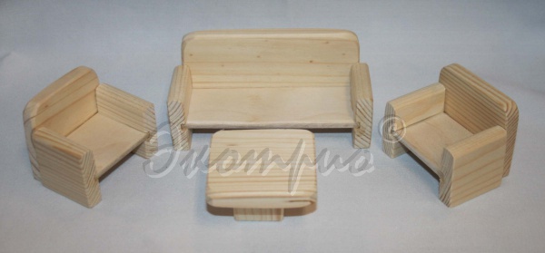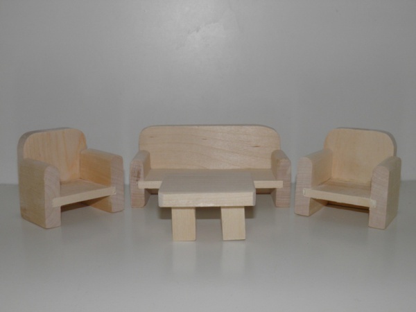 Каждая маленькая девочка – будущая гостеприимная хозяйка. С малых лет она наблюдает и изучает, как ее замечательная мама принимает гостей, перенимает и копирует поведение, затем играет со своими куклами, изображая радушную хозяйку дома. В наборе «Мебель для гостиной» 4 предмета: журнальный столик, диван и два кресла. Ваша девочка может создавать собственный интерьер в кукольном домике, рассаживать любимых кукол, переставлять мебель, играть в ролевые игры, проявляя творчество и развивая фантазию. Кроме того, весь гарнитур выполнен из натурального дерева, который можно раскрасить. Пусть малышка проявит индивидуальность и креативность, создав уникальный и неповторимый интерьер для своей, пока кукольной, гостиной.