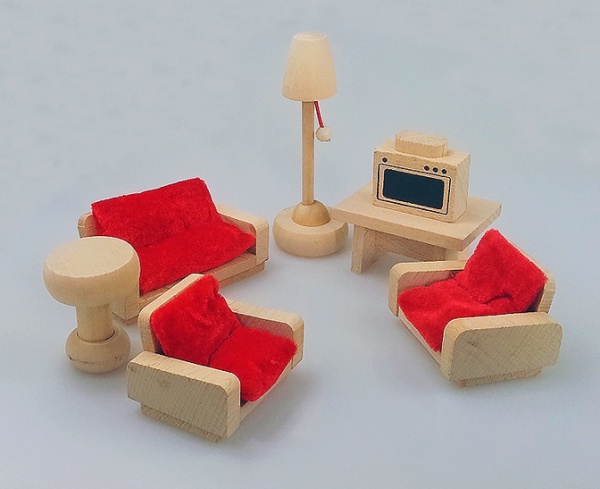 Предлагаем вашему вниманию замечательный качественный набор мини-мебели «Гостиная». Кресла, диванчик, торшер… Все это как во взрослой жизни. Ребенок сможет ярко украсить домик своей любимой куколки, ростом до 20 см.