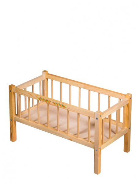 Кровать для кукол «Сонечка» подарит массу положительных эмоций и маме, и дочке. Производитель игрушечной мебели использовал натуральное дерево и качественную шлифовку. Осталось постелить постельное белье, положить подушечку – и спальное местечко для куклы готово! Верхнее ограждение кровати украшено красными ягодками и зелеными листиками. С помощью такой кроватки можно играть в интересные и полезные игры, укладывая куклу спать, поднимая ее по утрам. Если представить, что куколка совсем маленькая, можно вешать над кроваткой погремушки, украшать решетку ленточками, цветами, бантиками. Замечательно то, что при увлекательной игре с кроваткой, у девочки формируется правильная модель поведения женщины в семье.