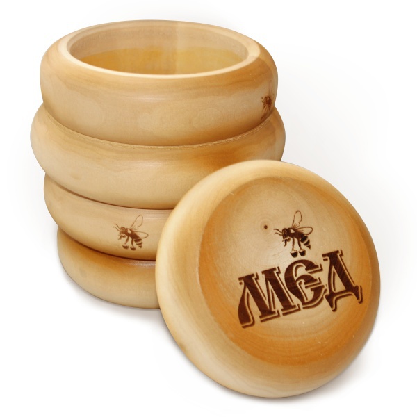 Бочонок под мёд, выточенный вручную из натурально дерева (липы). Внутренняя поверхность бочонка обработана натуральным пчелиным воском, чтобы мед сохранял целебные свойства и не впитывал посторонние запахи. Украшен Бочонок медовый вощеный "Улей" выгравированными пчелками по бочкам и надписью "Мед" на крышке. Издавна известно, что бочонки из липы сохраняют не только все вкусовые качества хранящегося в них меда, но и полезные вещества в их первозданном виде. Это лучшая тара для хранения меда. Кроме того, древесина липы очень красива, самобытна и благородна. Мед, хранящийся в вощеном липовом бочонке, обладает невероятным ароматом! Бочонок медовый вощеный "Улей"- это прекрасная упаковка для "сладкого золота", которая совмещает в себе наилучшие качества для хранения продукта и эстетические свойства традиционной деревянной тары.