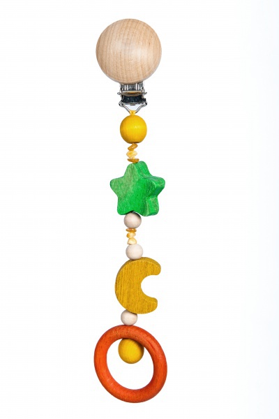 Подвеска для коляски "Яркие сны" с янтарем создана с любовью к деткам: дизайн тщательно продуман, детали изготовлены из натурального дерева и натурального полудрагоценного камня (янтаря). Подвеска для коляски "Яркие сны" с янтарем несомненно порадует малыша: яркие цветные детали игрушки надолго завладеют его вниманием, к тому же они помогают концентрировать взгляд, ощупывание их способствует развитию мелкой моторики и координации движений. Надежное крепление обеспечит специальная клипса- прищепка, предусмотренная на одном конце изделия.