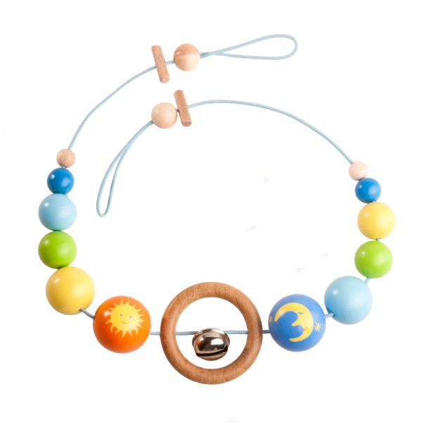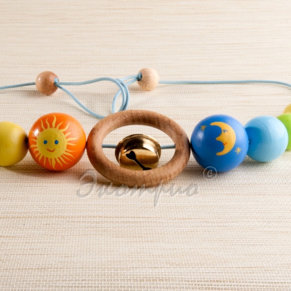 Солнышко и месяц на деревянной растяжке привлекут внимание малыша. Сначала он будет просто фокусировать взгляд на раскачивающихся ярких бусинах, потом начнет тянуться к ним ручками, задевая мелодичный колокольчик. Хорошо, когда игрушки для самых маленьких яркие и безопасные, а еще - сделаны с любовью и смыслом. Эта растяжка как раз такая! Как из колыбельной песни: "В няньки я тебе взяла солнце, месяц и орла". Мелодичный звон колокольчика хорошо успокаивает ребенка, настраивает его на сон или помогает познавать мир.
