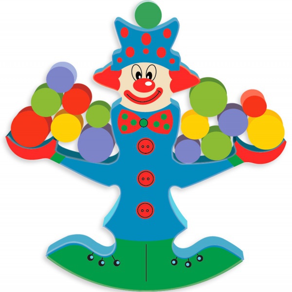 Веселая и увлекательная деревянная игра " Весы-клоун " понравится детям и взрослым. Для такой игрушки потребуется ровная поверхность, например, стола или табурета, в крайнем случае, можно устроиться и на полу. Помимо клоуна в комплекте есть множество разноцветных деревянных цилиндров разного веса, которые нужно аккуратно уложить в руки клоуна , не потревожив его равновесия! Цель игры – уравновесить забавного циркача и сделать так, чтобы он не упал от перегрузки. Укладывая цилиндрики, ребенок может называть их цвета и пересчитывать их. При игре с весами ребенок получит представление о понятиях тяжелее - легче, больше - меньше, а также об основных цветах, такая игра способствует развитию у детей точности, координации движений, усидчивости, воображения, логического мышления и мелкой моторики пальчиков