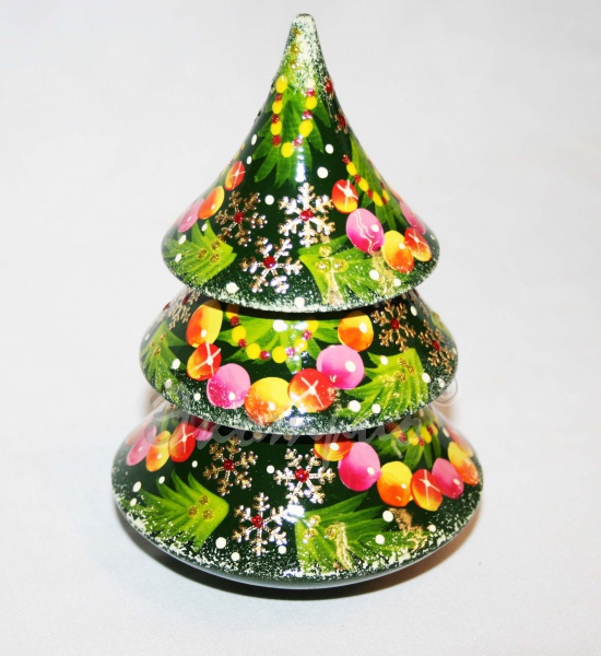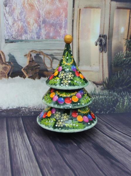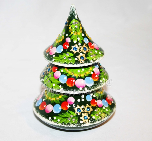 Игрушки-неваляшки – истинно русское изобретение и очень популярный сувенир в других странах. Представляем оригинальную неваляшку в виде новогодней елочки. Игрушка сделана из натурально дерева и расписана вручную. Яркие краски, оригинальные украшения – елочка будет создавать великолепное праздничное настроение в доме.