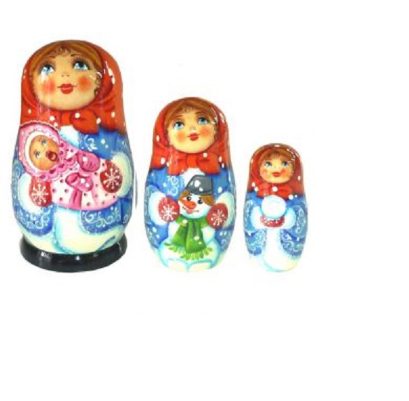 Прекрасная авторская работа! Идеальный сувенир- красивый, эстетичный, стильный. Эта чудесная трехкукольная матрешка- просто загляденье! Настоящая иллюстрация ясных и солнечных зимних деньков, таких, когда искрится снег, кружатся снежинки, а на щеках играет румянец. Кругом веселье, дети катаются с горок, играют в снежки и лепят снеговиков. Царит мечтательное, хорошее настроение, потому что такие семейные зимние прогулки прекрасны, особенно, если тепло одеться – в теплый зимний полушубок и красные платочки!