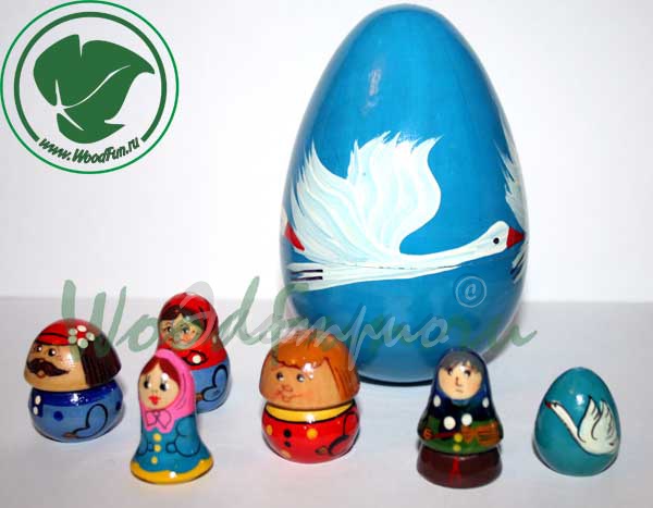 Щемящий сердце сюжет сказки "Гуси-лебеди" точно воплощен художниками в деревянной игрушке - пальчиковом театре. Он представляет собой шкатулку небесно-голубого цвета с летящими лебедями, внутри которой мужик да баба, сынок их и дочка, ну и, обязательно, Баба-яга и гуси-лебеди. Такой пальчиковый театр просто незаменим, когда в доме собираются гости, занять детей просто чтением сказки - невыполнимая задача, а предложить участие в ней с помощью специальных деревянных игрушек - совсем другое дело! Детвора с удовольствием включится в игру и внимательно послушает сказ про кисельные реки и молочные берега. Одна-две репетиции, и они смогут показать вам настоящий спектакль с помощью пальчикового театра самостоятельно!