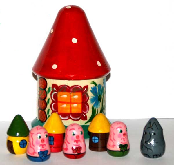 Подарите своему ребенку деревянный домик-шкатулку с сюрпризом, внутри он найдет героев сказки "Три поросенка": волка и самих поросят с домиками. Это не просто сказочные персонажи, а самый настоящий пальчиковый театр. Сюжет сказки знаком детям с ясельной группы детского сада, так что трудностей с постановкой точно не возникнет, пальчики-поросята будут с удовольствием прятаться от волка в свои домики. Такая деревянная игрушка - отличное занятие для развития мелкой моторики, координации и скорости реакции.