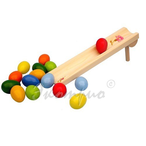"Пасхальная горка " изготовлена из натурального дерева, все углы и края горки тщательно отшлифованы, яйца расписаны вручную безопасными яркими красками. Играть в такую игру одно удовольствие. Отлично подойдёт в качестве подарка!