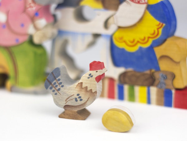 Пазл "Курочка Ряба" - настоящая находка для родителей тех деток, кто неусидчив и невнимателен. Если ваш ребенок не может дослушать до конца даже самую простую сказку, то купите ему этот пазл, и пока он будет знакомиться с героями сказки, вы без труда прочтете ее от начала до конца. А потом сможете сыграть с ним в поиски нехватающего действующего лица. Спрячьте курочку или золотое яичко и спросите, кого или чего не хватает.