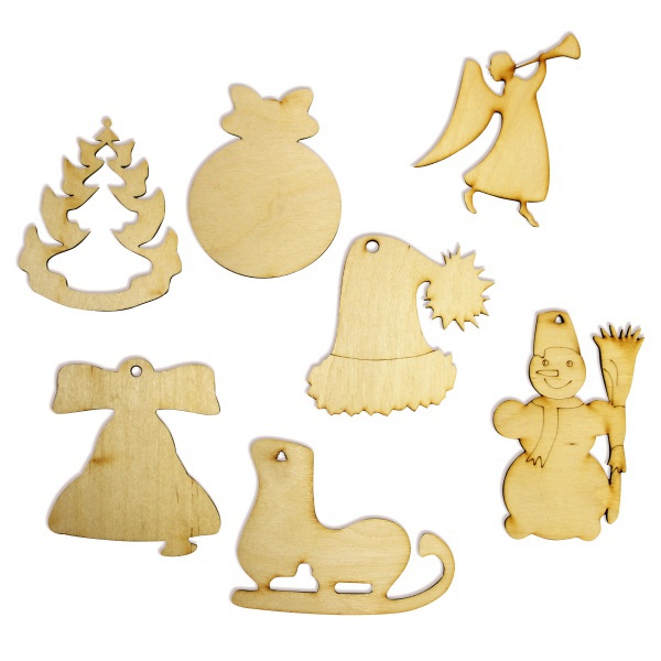 Набор состоит из 7 плоских фанерных фигурок различной формы. Каждая фигурка имеет отверстие для подвеса. Набор подвесок "Рождество" идеально подходит для росписи, декупажа и любого прикладного декорирования. Стоит только применить фантазию, немного усидчивости и терпения, и Ваш шедевр будет украшать Рождественскую елочку, придавая общему интерьеру атмосферу праздника, комфорта и уюта! Украшать фигурки из Набора подвесок "Рождество" понравится и деткам, и взрослым независимо от возраста, особенно, если в этом творческом занятии объединить усилия, устроить конкурс, выставку! Во время таких совместных занятий увлекательная беседа о традициях Праздника, его истоках будет как нельзя кстати, это поможет участникам творческого процесса развить фантазию, воображение и время с еще большей пользой и удовольствием!