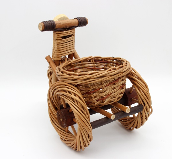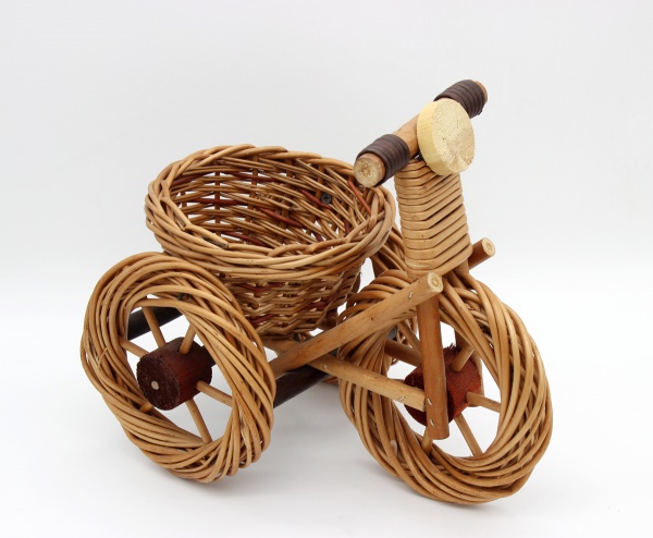 Велосипед сплетен из ивовой лозы. Идеально подходит для домашних задач и использования в загородном доме. Может быть использован: - для хранения различных предметов и продуктов; - как декоративный элемент интерьера. Все наши изделия изготовлены из экологически чистого материала, который не воздействует на продукты.