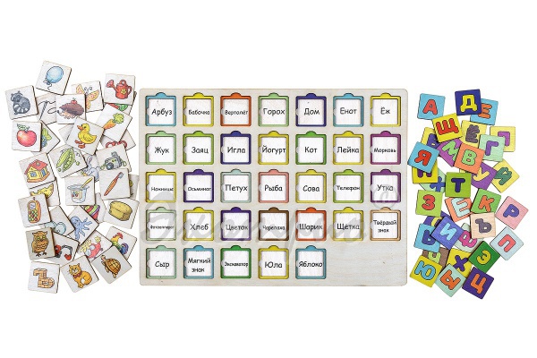Уникальная азбука-игра представляет собой формованную доску с ячейками, в которых под каждой картинкой скрывается буква, на которую начинается изображенный на ней предмет, а далее скрывается название предмета. Принцип игры заключается в том, чтобы в ячейки вставлять деревянные вкладыши с картинками, подходящие к букве. Ребенок с удовольствием будет искать «домик» букве, проговаривая названия букв и слов, играючи легко и непринужденно выучит буквы. Игра Секретики Алфавит не только помогает быстро и легко освоить буквы и звуки, но и развивает мышление, усидчивость, логику.