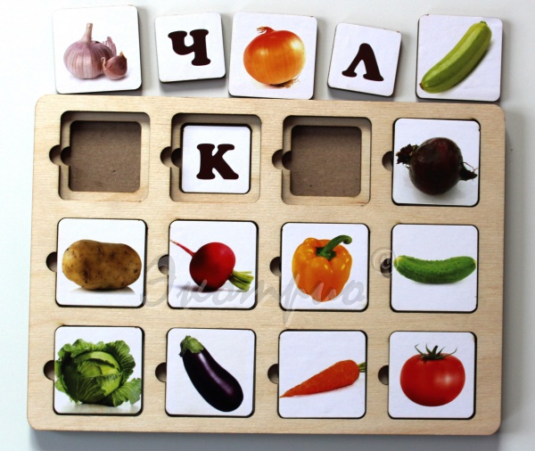 1.    Можно изучить названия овощей и первые буквы, с которых они начинаются. Игра подойдет для детей 4-6 лет.