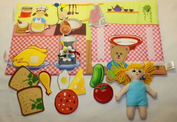 Папка содержит дополнительные элементы для интересной игры. Это и сама Маша, и медвежонок, и элементы еды и кухонной утвари (колбаса, огурец, яичница, помидор, ломтики хлеба, сыр, куриная ножка, скалка, доска).