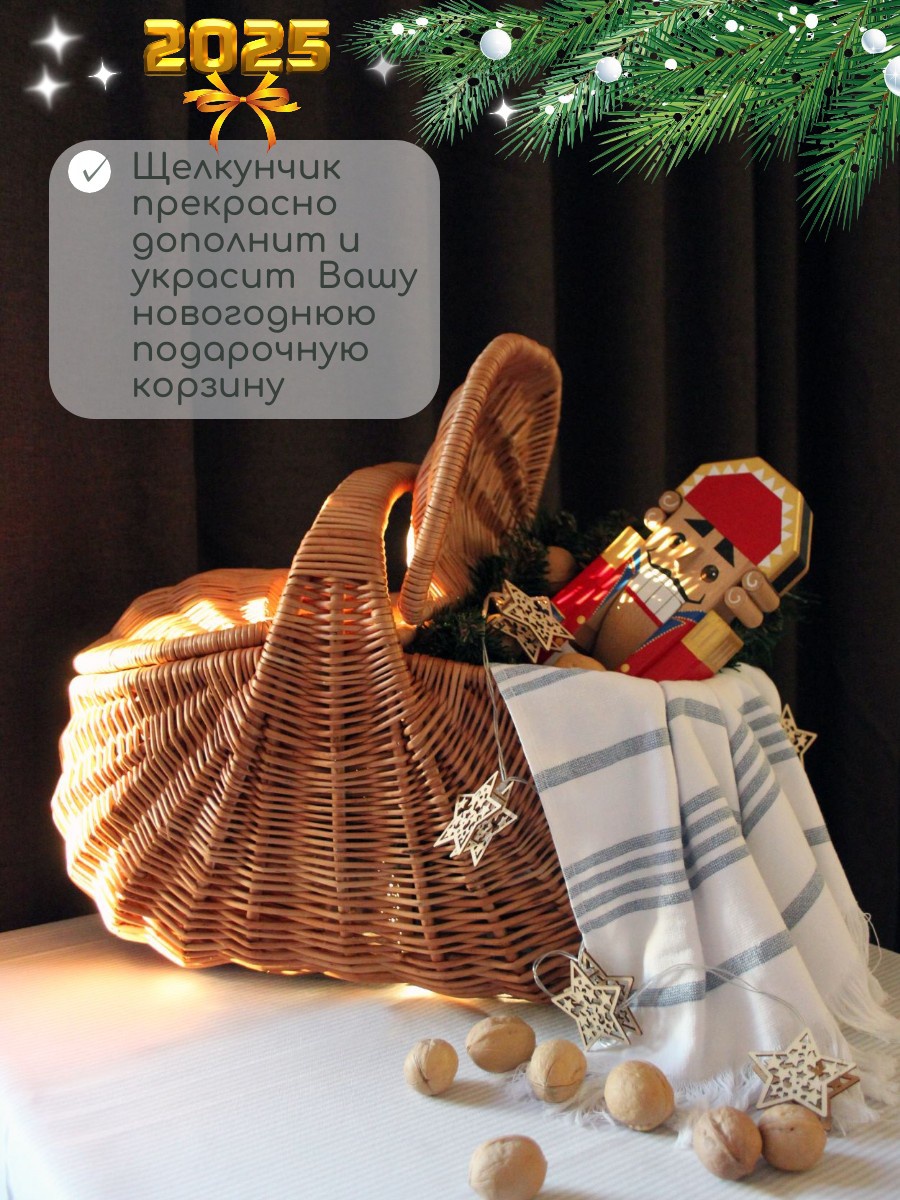 Размер щелкунчика без подставки: высота 30 см, ширина 12 см, глубина (без рычага)- 6,5 см