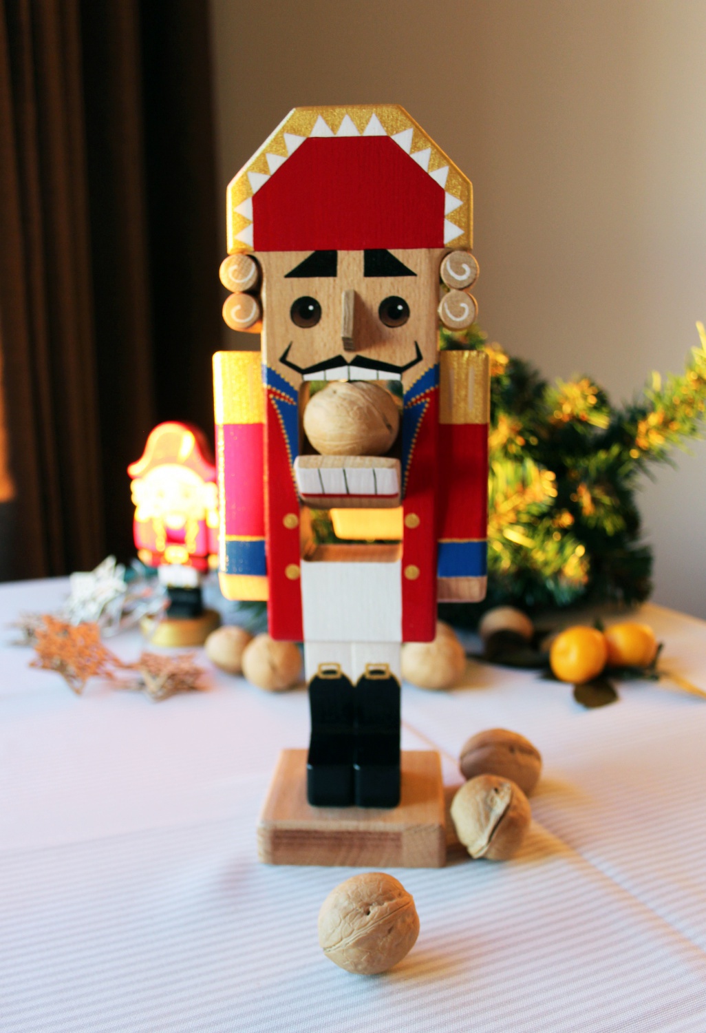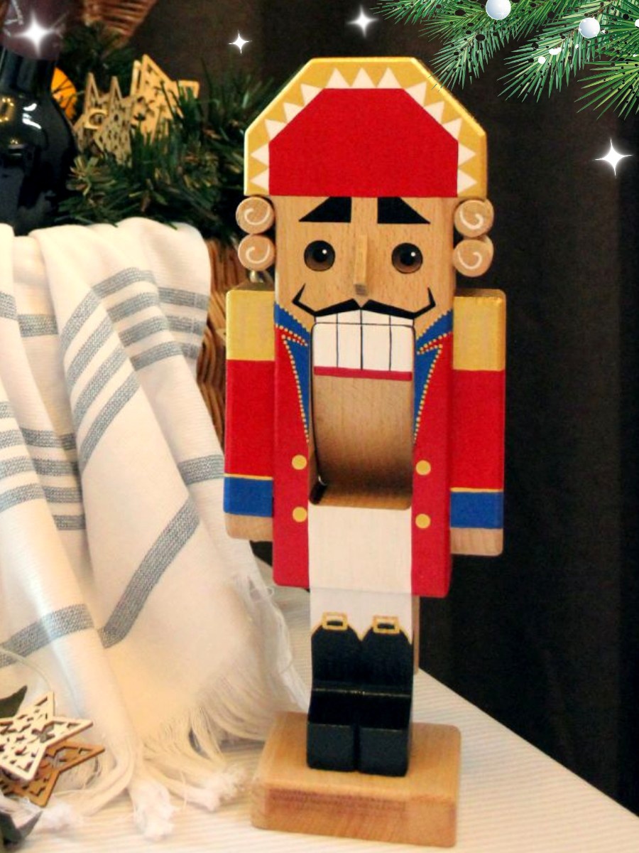 Старинное приспособление для колки орехов было описано Э. Гофманом, воспето П. Чайковским и создано умелыми руками резчика по дереву. Сказка об ожившей в руках маленькой девочки грозной игрушке знакома каждому ребёнку. Щелкунчик орехокол премиум — это гигантская классическая модель, собранная и расписанная вручную из бука - твердой породы древесины, с подвижным и функциональным ртом.