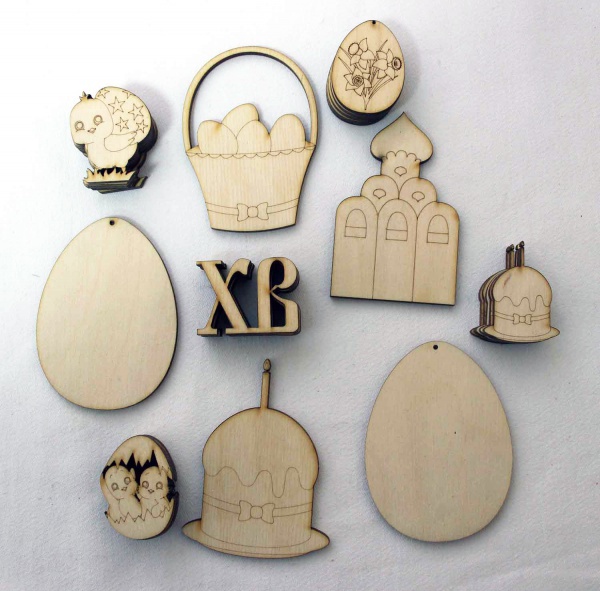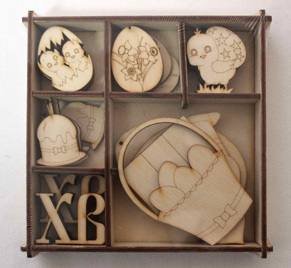 Набор из тоненьких и прочных деревянных фигурок – именно то, что нужно для оформления обложки декоративного фотоальбома. Красиво и изысканно оформленный фотоальбом станет прекрасным, неповторимым Пасхальным подарком-сувениром ! Симпатичные цыплята, корзиночка с яйцами, часовня, куличи и красивые буквы – что еще нужно, чтобы украсить фотоальбом весенней Пасхальной тематики? Такие фигурки подойдут не только для украшения фотоальбома. Ими можно украсить и праздничный стол на Пасху, и интерьер комнаты, кухни. Используйте свои навыки декупажа или просто распишите эти тематические фигурки вместе с детьми !