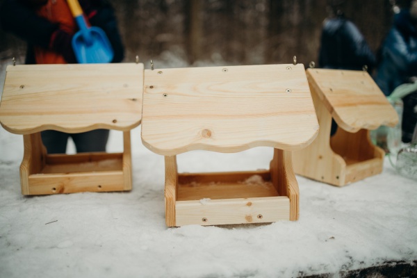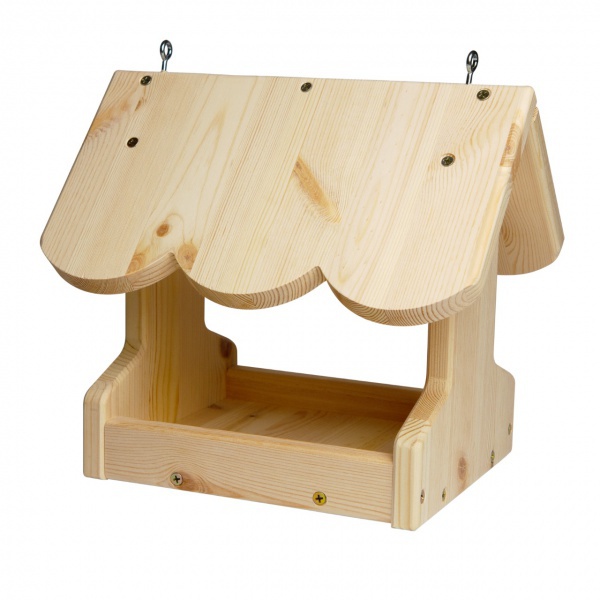 Аккуратно сделанная из массива липы, кормушка гладко отшлифована, поэтому ребенок не поранится, насыпая корм синицам и сойкам. Птичьи деликатесы защищены крышей от дождя и снега и бортиками от ветра.