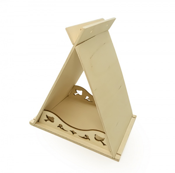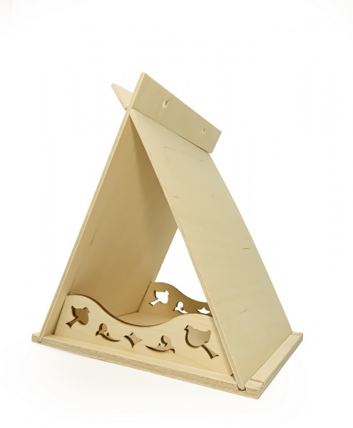 Набор для детского творчества поставляется в виде плоских фанерных заготовок, которые легко превращаются в птичью столовую без клея и гвоздей с помощью предусмотренных в конструкции традиционных приёмов соединения разных частей древесины. Мизерная цена, море удовольствия!