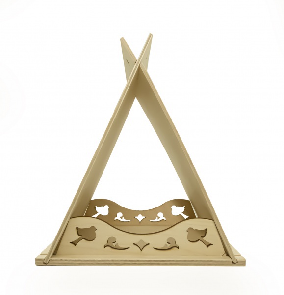 Любопытно, что дизайнерская идея этого домика принадлежит шестилетней девочке. Кормушка для птиц Вигвам придумана в форме шалаша-крыши, раскрывающейся вверху, как хвост ласточки. Эффект абстракции усиливается неокрашенными панелями, которые при желании могут стать полигоном для ярких красок.