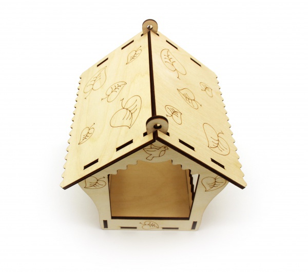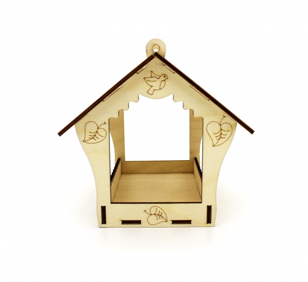 Интересная сборная деревянная модель уличной кормушки для птиц. Кормушка сборная «Листик» представляет собой деревянный конструктор из экологически чистой фанеры естественного древесного цвета. Эта открытая деревянная кормушка для птиц очень изящна- скаты и пороги украшены резными зубцами, а на гладкой поверхности выгравированы изображения древесных листочков и маленьких птичек, как напоминание о лете. Модель кормушки собирается в пазы легко и быстро и не требует никаких инструментов для работы. Деревянная сборная модель кормушки- превосходный подарок детям! Ведь получив такой набор, ребенок своими руками сможет собрать и раскрасить по своему вкусу замечательную «столовую» для уличных птичек, совершив тем самым НАСТОЯЩЕЕ ДОБРОЕ ДЕЛО!