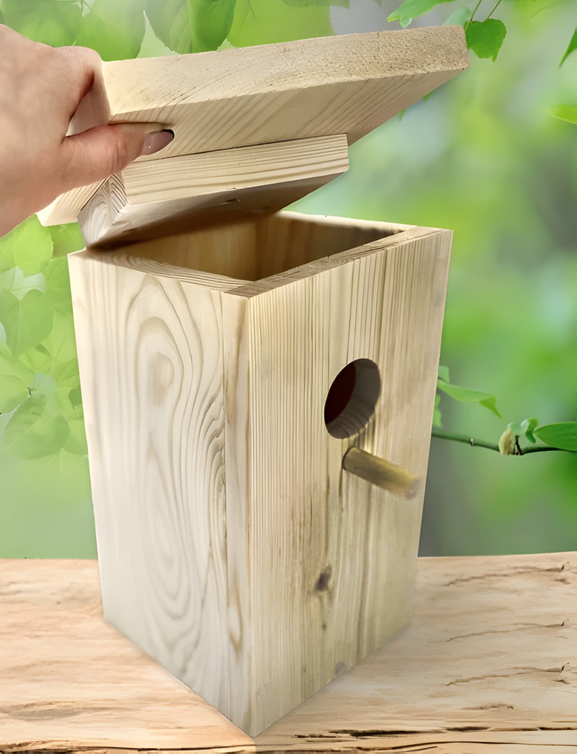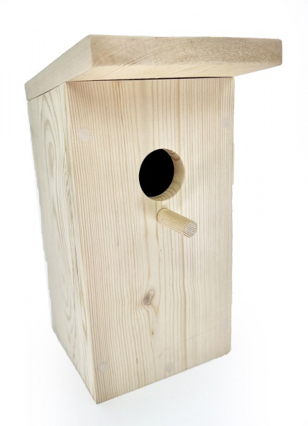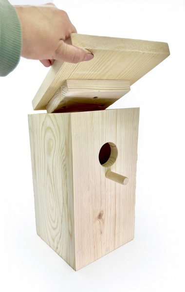 Скворечник Клювик с открывающейся крышей — птичий домик в традиционном дизайне. Скворечник выполнен из натурального дерева, обработанного снаружи и необработанного внутри, чтобы птицам было легче покидать жилище.