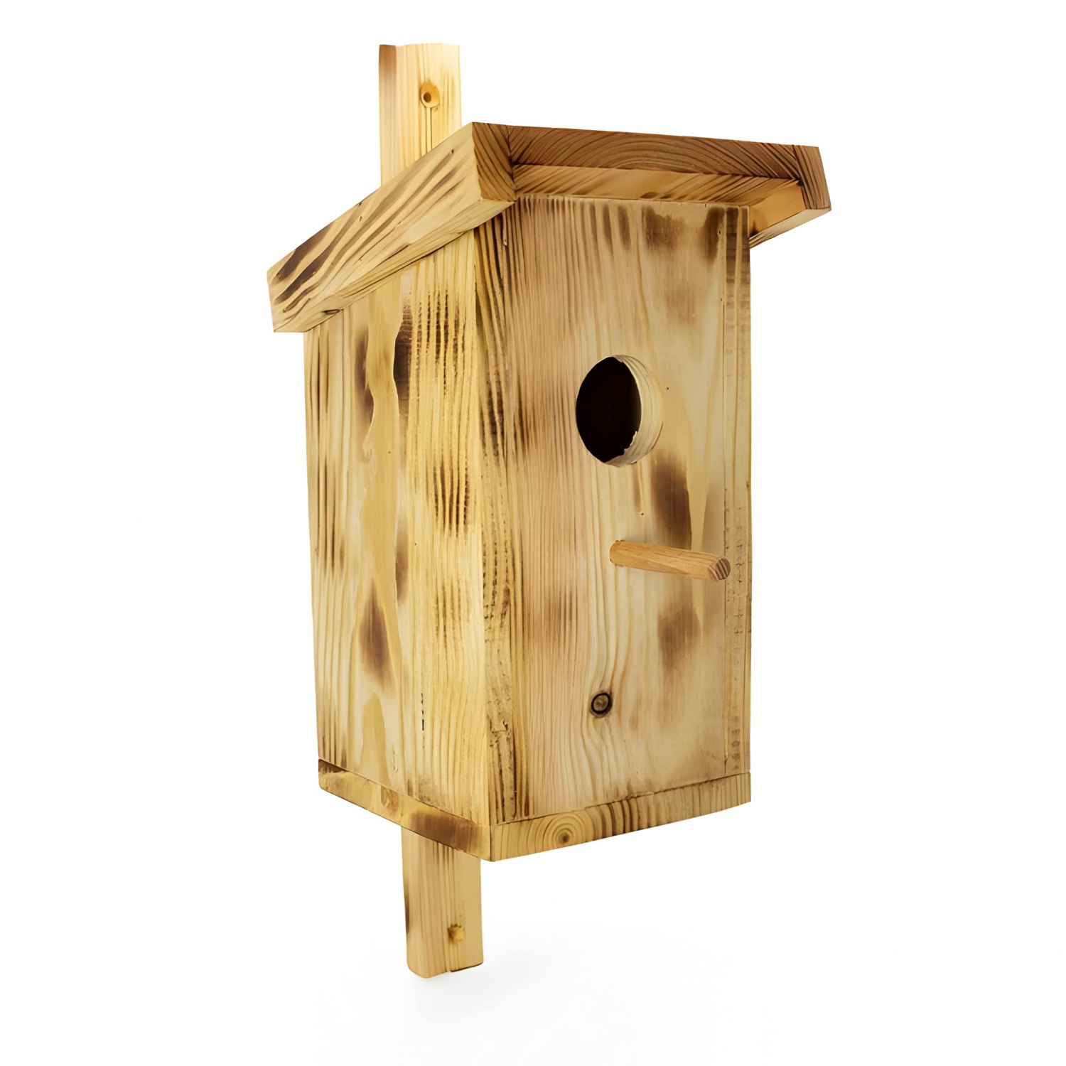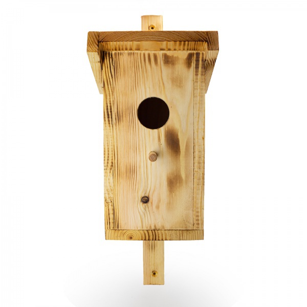 Древесина скворечника "Ленинец" обожжена и пропитана маслом для долговечности. Диаметр летка - 50 мм. Скворечник оснащен планкой для крепления к дереву, которая выступает сверху и снизу примерно на 10 см - при желании скворечник можно прикрепить к дереву, обмотав веревкой, а также на планке предусмотрены отверстия для саморезов. Поставляется в собранном виде.