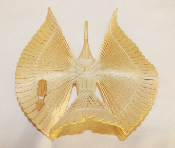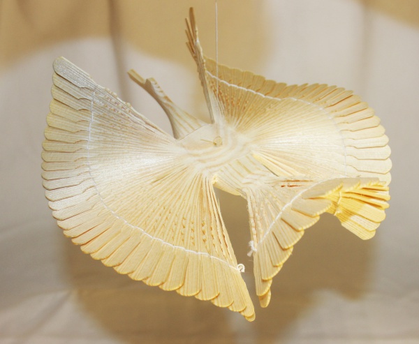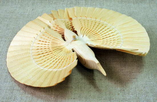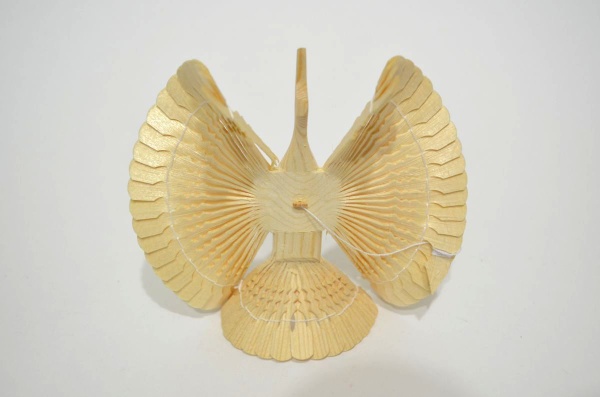 Крылья птицы настолько тонкие, что под светом лампы или фонаря кажутся прозрачными, и на них видны древесные узоры. Во времена Ведической Руси птиц вырезали волхвы. Причем, каждое перышко — одним движением ножа. При этом произносились таинственные заклинания, и оберег приобретал магические силы.