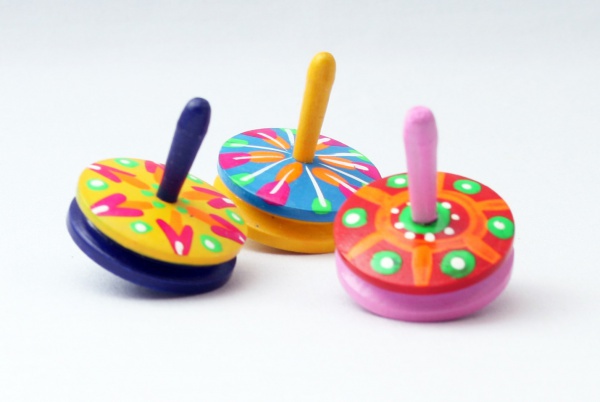 Искусство изготовления волчков пришло к нам из Китая и Японии, где было известно еще около 2000 лет назад! Для запускания волчка требуется особый навык, развитые и тонкие движения пальца. Ребенок учится правильно рассчитывать силу и точность движения пальцев и кисти. Справиться с этой задачей под силу детям от 5 лет. Тренируется внимание и воображение. Игра с волчком – это еще и хороший способ усвоения законов смешения цветов, при которой ребенок попутно узнает названия новых оттенков. Самые маленькие любят с восхищением наблюдать за движением волчка, и за тем, как из двух цветов, например, красного и желтого, вдруг, как по волшебству, получается оранжевый.