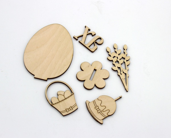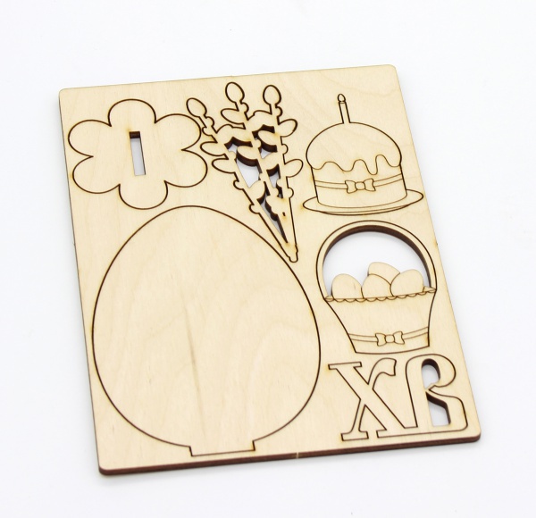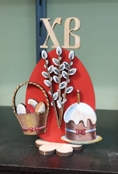 На гладком фанерном листе присутствуют практически все пасхальные символы:
