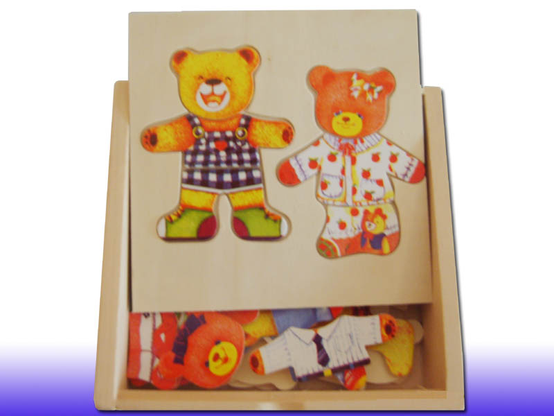 Мамочки, помните, как в Вашем Детстве были бумажные куколки, на которые Вы одевали различные бумажные платьица, костюмчики, шляпки, туфельки? Модных Мишек из нашего пазла тоже можно переодевать в разную "одежку", одновременно играя в пазл на деревянной дощечке. Крупные и гладкие детали пазла будут интересны малышам!