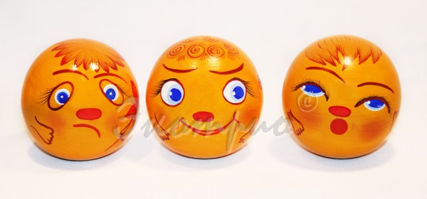 Привлекательные и необычные шарики-неваляшки из натурального дерева помогут вам научить ребенка различать разнообразные человеческие эмоции. В наборе игрушек – три шара, передающие три наиболее частые человеческие эмоции. Это веселье, грусть и сердитость. Играя с такими шариками, вы легко поясните малышу, чем же отличается то или иное состояние человека, почему нельзя сердиться и почему веселье лучше грусти. Все шарики-неваляшки расписаны вручную и издают мелодичный звон при покачивании.
